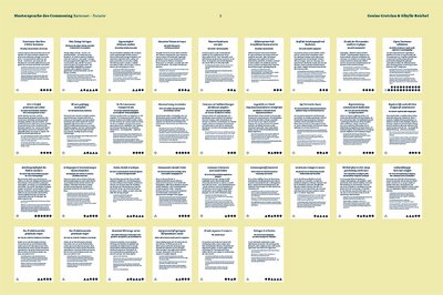 Hier können Sie sich direkt in den Mustern umsehen (für eines der drei Felder entscheiden und dann für ein Muster...): mustersprache.commoning.wiki/view/welcome-visitors